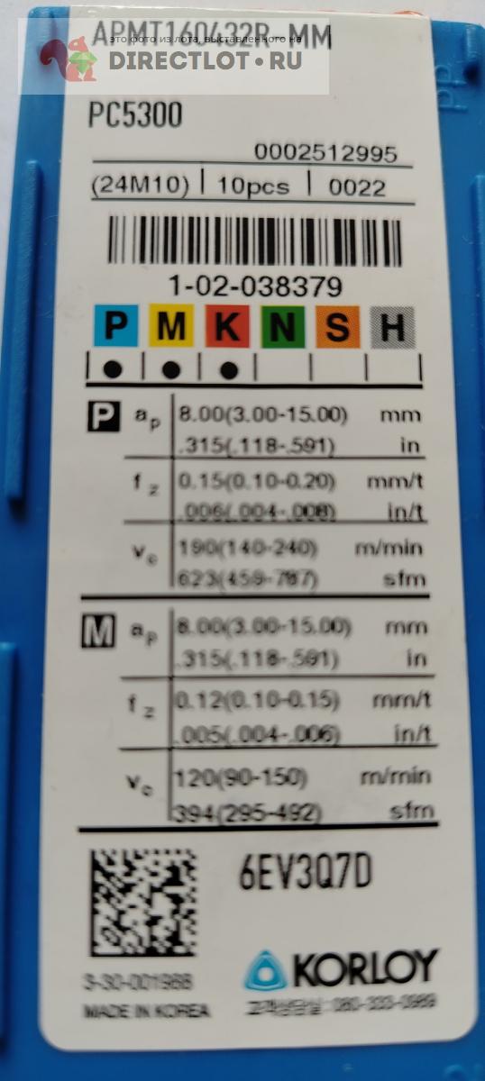 Код для вставки ссылки на эту страницу в сообщения на форумах: [url=https://directlot.ru/lot.php?id=1784489] пластина твердосплавная APMT160432R-MM PC5300, KORLOY, Корея купить, объявление на DIRECTLOT.RU [/url]