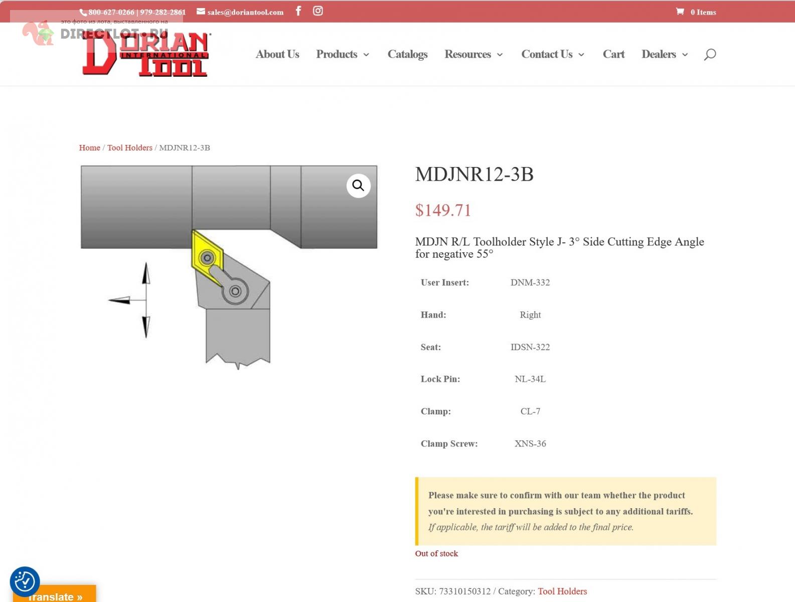 Токарный резец проходной Dorian Tool MDJNR12-3B 19 x 19 мм (+10 пластин к нему) купить