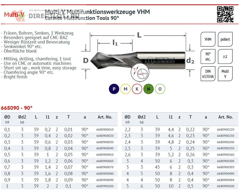 Фреза концевая 0,9х1,8х39 мм z=2, V-образная 90° с цилиндрическим хвостовиком, многофункциональная. Материал - твердый сплав без покрытия, для обработки сталей, в т.ч. нержавеющих, чугуна, цветных сплавов. Применяется для сверления, в т.ч. по интерполяции, фрезерования фасок, уступов, пазов, зенкования, гравировки.