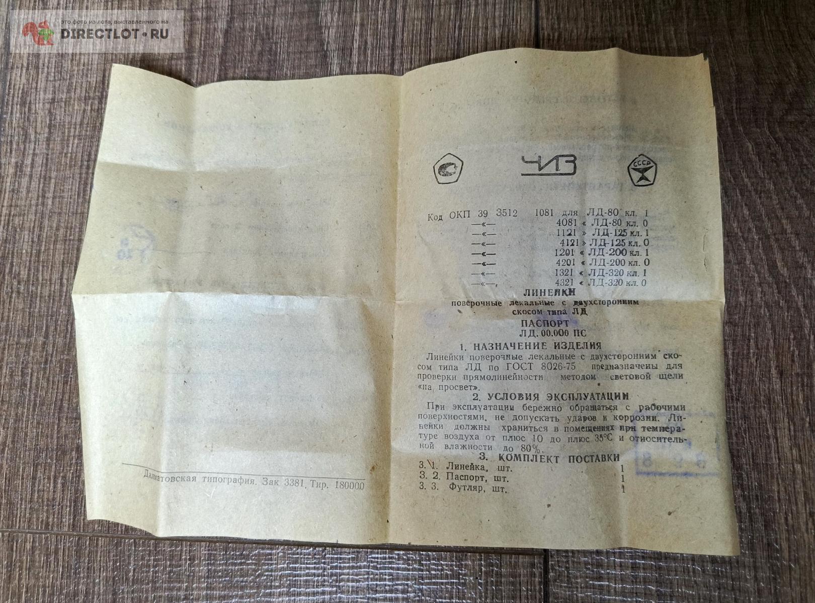 Лекальная линейка с двухсторонним скосом ЛД-200 ГОСТ 8026-75 для измерения прямолинейности и плоскостности поверхностей, производства СССР (Челябинский инструментальный завод).