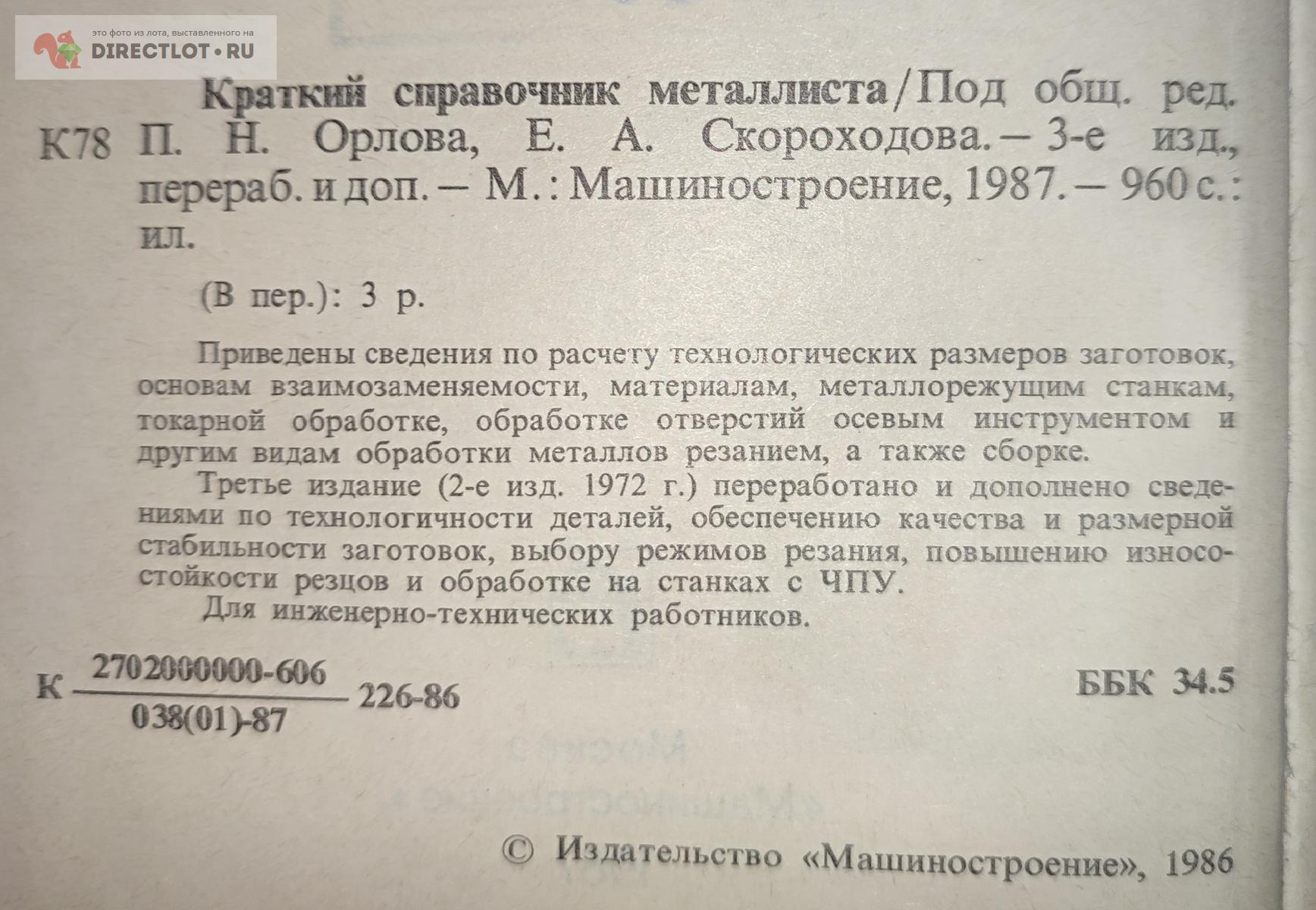 Бесплатное объявление 1790773 в рубрике Книги по теме работы с металлом и материалами продам: Орлов П.Н., Скороходов Е.А. и др. Краткий справочник металлиста. 1987 купить в Саратове цена 600 руб. Объявление размещено пользователем «Дамир».