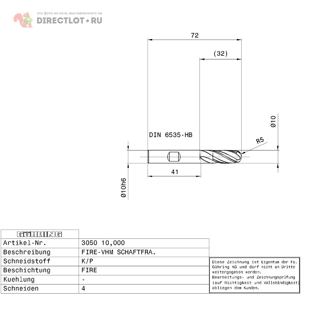 Код для вставки ссылки на эту страницу в сообщения на форумах: [url=https://directlot.ru/lot.php?id=1791748] Фреза сферическая Guhring 3050 D10 R6 купить, объявление на DIRECTLOT.RU [/url]