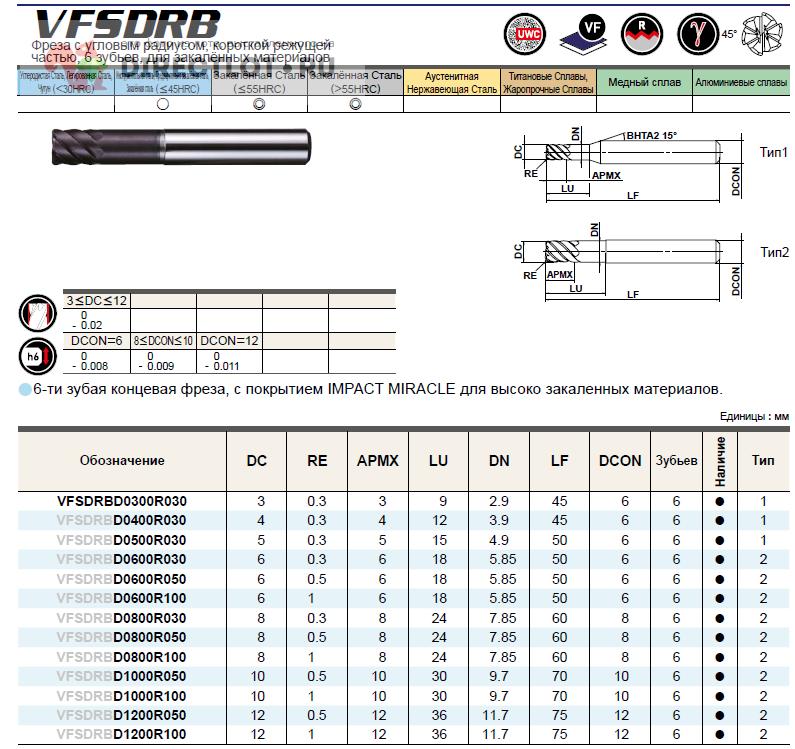 Бесплатное объявление 1792982 в рубрике Инструмент Фрезерный (фрезы, головки) продам: Фреза твердосплавная ф 12 мм VFSDRBD1200R050 (D12 Z6 R0,5) Mitsubishi купить в Москве цена 3000 руб. Объявление размещено пользователем «grogin».