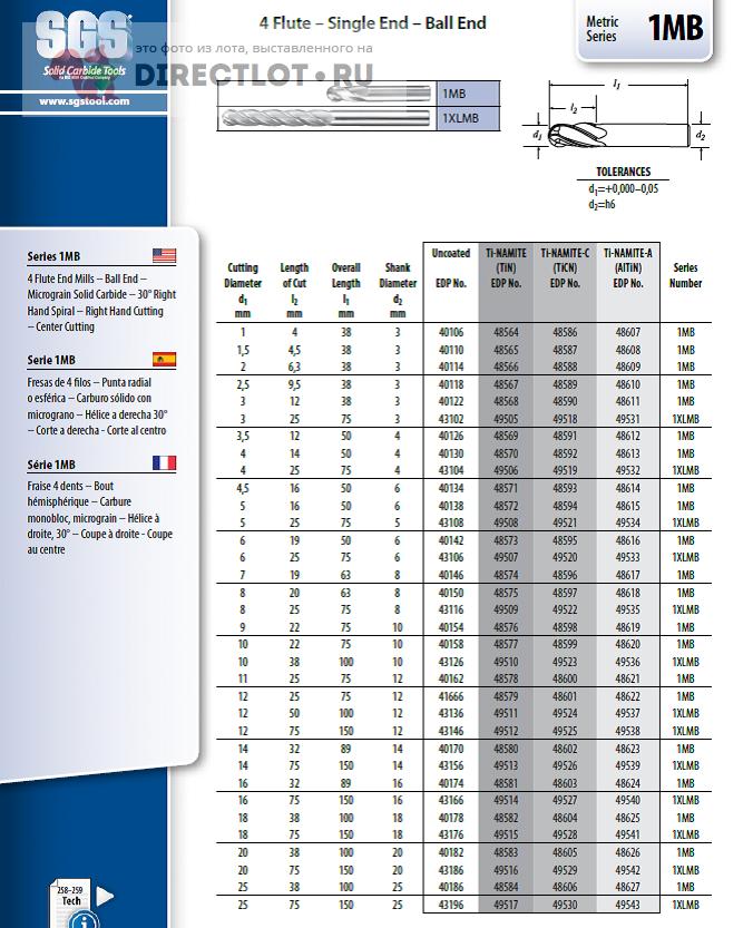 Код для вставки ссылки на эту страницу в сообщения на форумах: [url=https://directlot.ru/lot.php?id=1794202] Фреза твердосплавная ф 7 мм 48574 серия 1MB (D7 Z4 R3,5) SGS купить, объявление на DIRECTLOT.RU [/url]