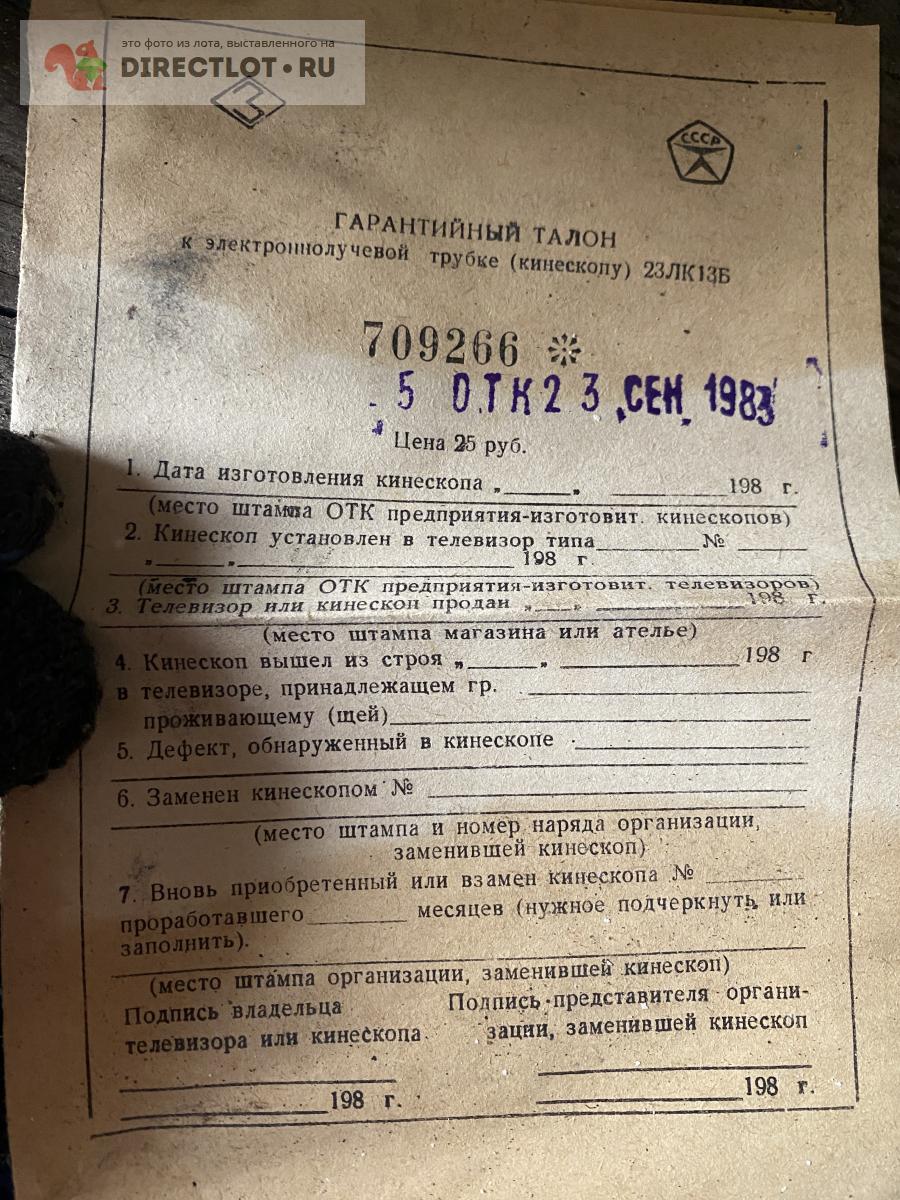 Код для вставки ссылки на эту страницу в сообщения на форумах: [url=https://directlot.ru/lot.php?id=1802046] Электронно-лучевая трубка 23ЛК13Б (кинескоп) купить, объявление на DIRECTLOT.RU [/url]