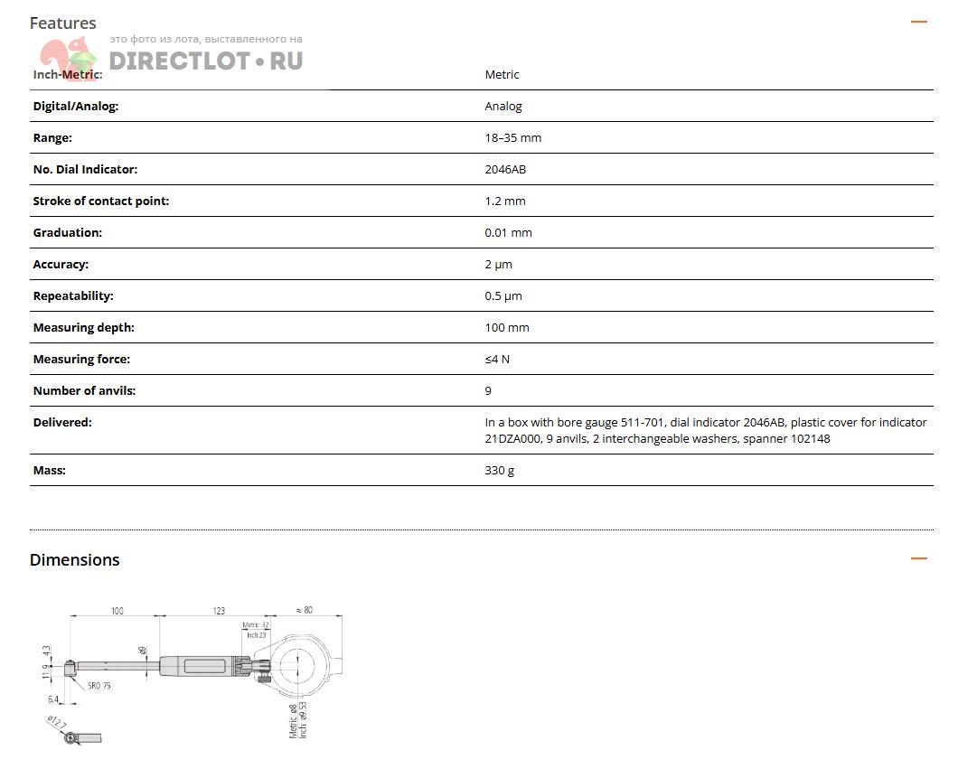Код для вставки ссылки на эту страницу в сообщения на форумах: [url=https://directlot.ru/lot.php?id=1803256] Нутромер индикаторный Mitutoyo 511-712-20 35-60 мм 0.01 мм купить, объявление на DIRECTLOT.RU [/url]