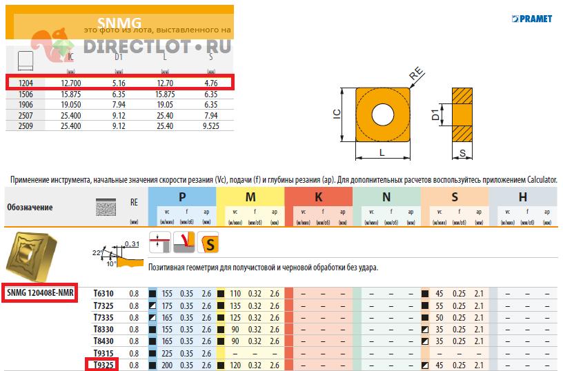 Пластина SNMG 120408E-RM T9325 (PRAMET) купить