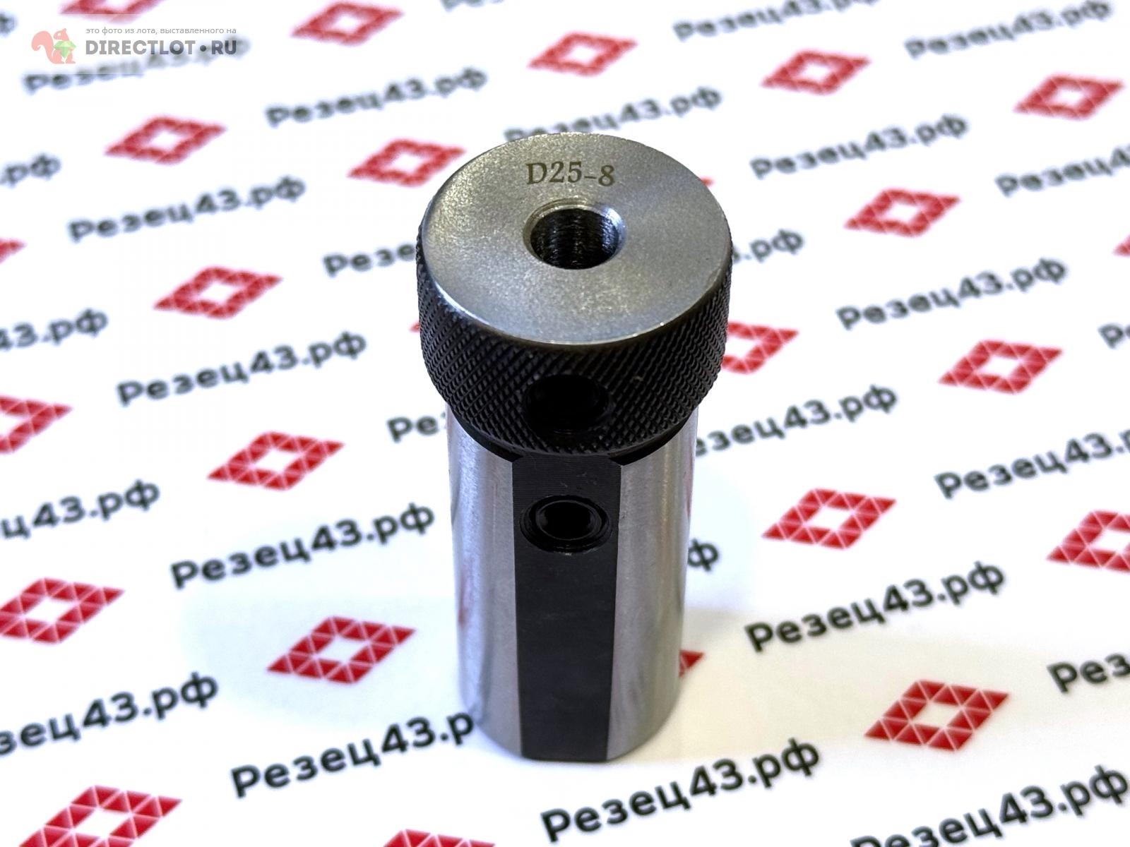 Втулка переходная понижающая D25-8mm. Переходник для инструмента с цилиндрическим хвостовиком с диаметра 8 мм на диаметр 25 мм. Используется для фиксации фрез, сверл, расточных резцов с помощью винтов. Подходит для удержания цилиндрического хвостовика в револьверной головке на токарном станке с ЧПУ.